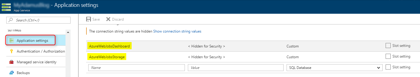 Azure Let’s Encrypt extension requires a web job to renew the certificate once it is expired after 3 months. Therefore, you need to add the two Connection Strings AzureWebJobsDashboard